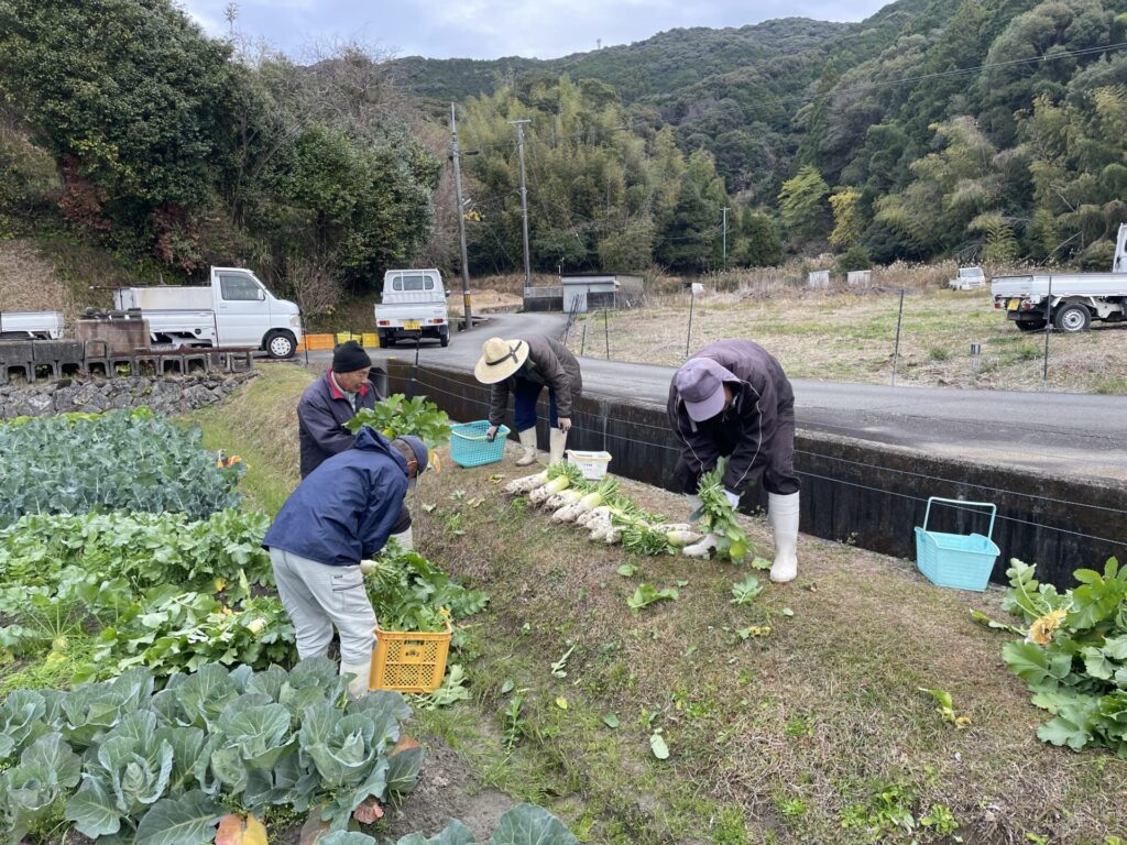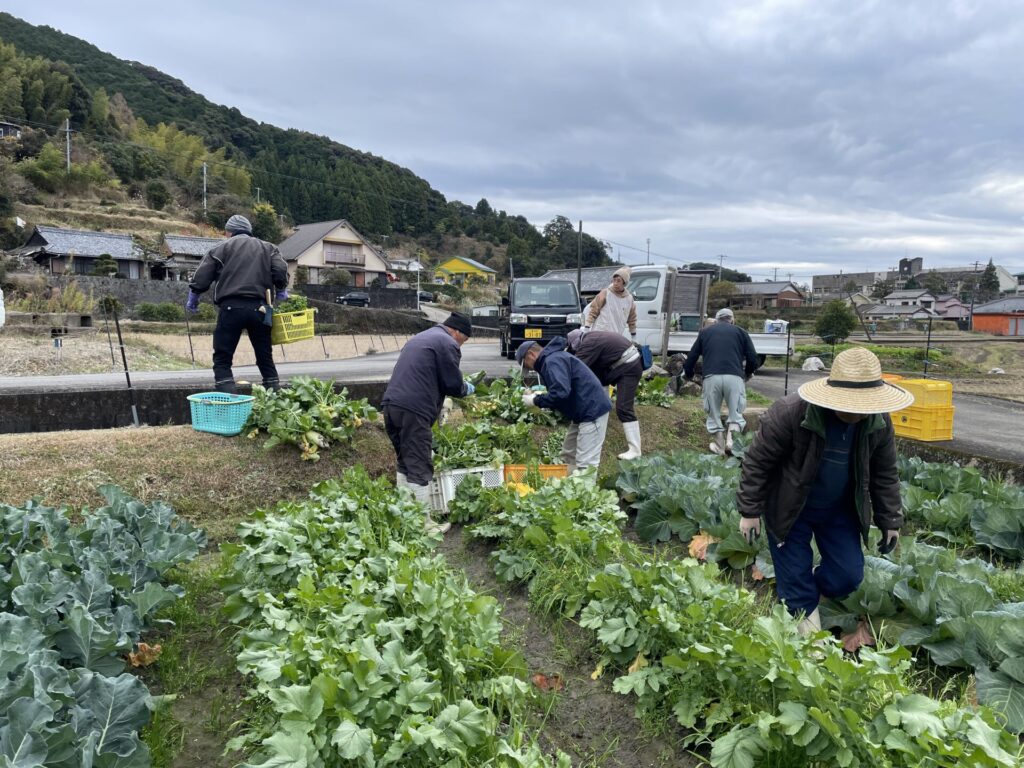 2025年12月29日 神内テスト野菜畑にて 今年は、おでん大根・ブロッコリー・キャベツ・白菜の栽培をしていますが、今年も収穫の時期が来たので実施しました。今回も収穫後「熊野市のほほえみかん」へ出荷しました、お疲れ様でした。