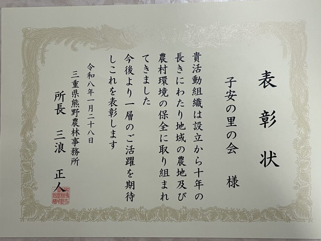 本日は、熊野地域のつどいで 子安の里の会が「長期(10年)活動表彰」をしていただきました。