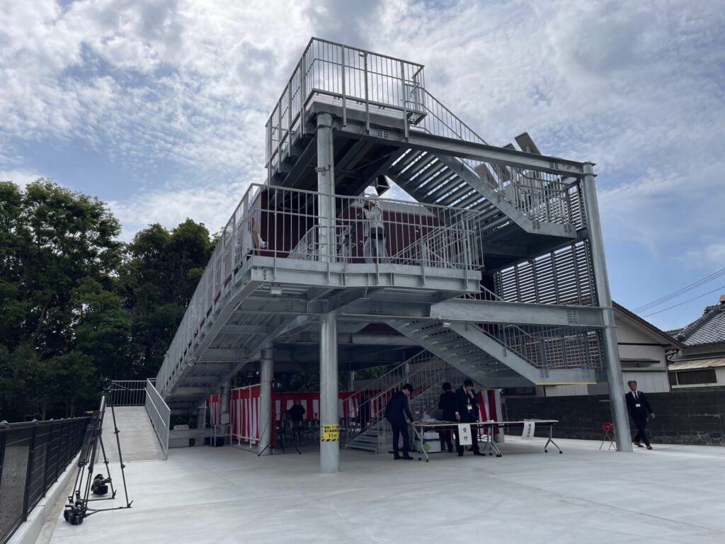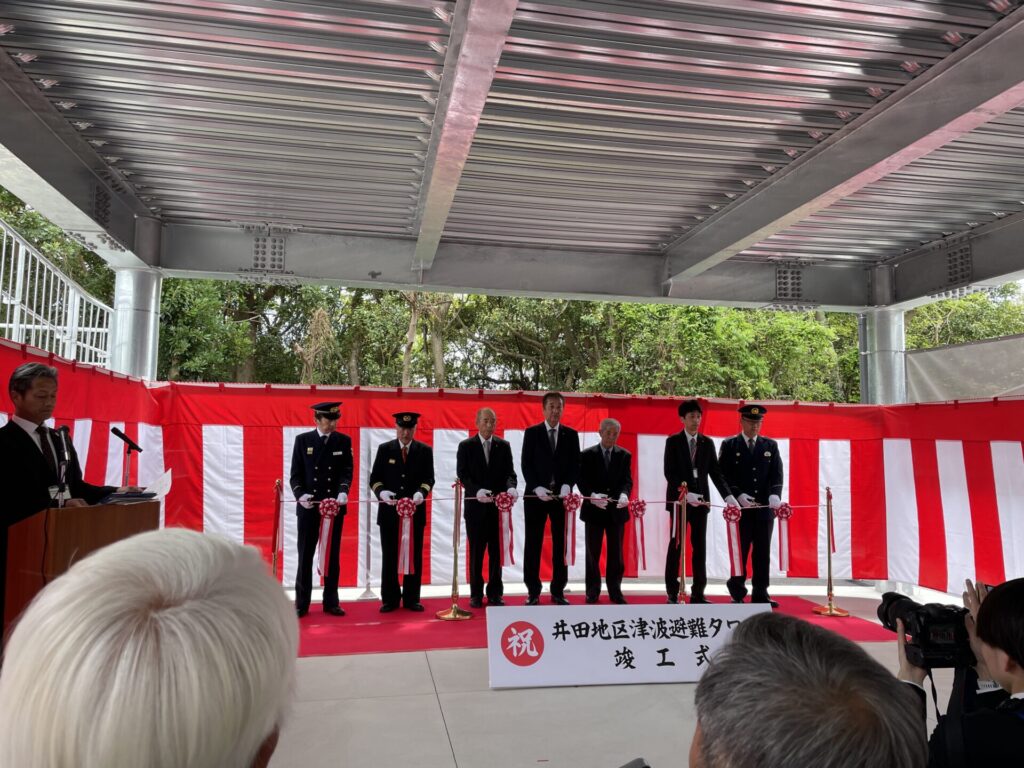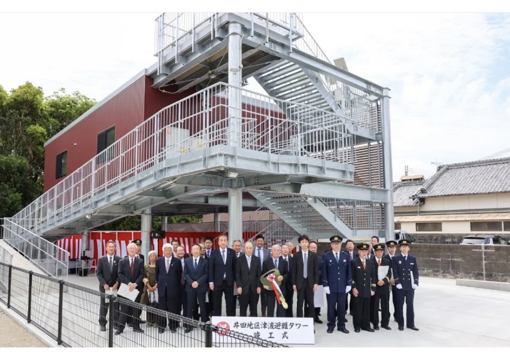 紀宝町井田地区に「津波避難タワー」が完成し、竣工式が行われました、町の防災対策の象徴となる施設で、災害時には一人でも多くの命を守「最後の砦(とりで)」として防災力の向上が期待されています。